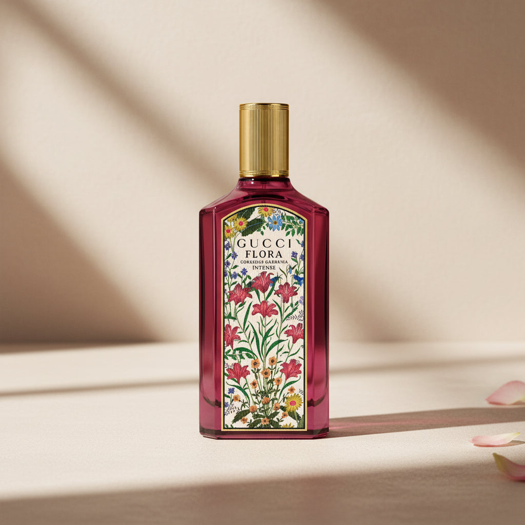 عطر فلورا جورجيوس جاردينيا انتنس غوتشي عطر خشبي - للنساء . هذا عطر جديد Flora Gorgeous Gardenia Intense صدر عام 2025. افتتاحية عطر الماندرين (اليوسفي)؛ قلب عطر الخريفدينيا و جزئ هديون; قاعدة عطر من خشب الصندل.