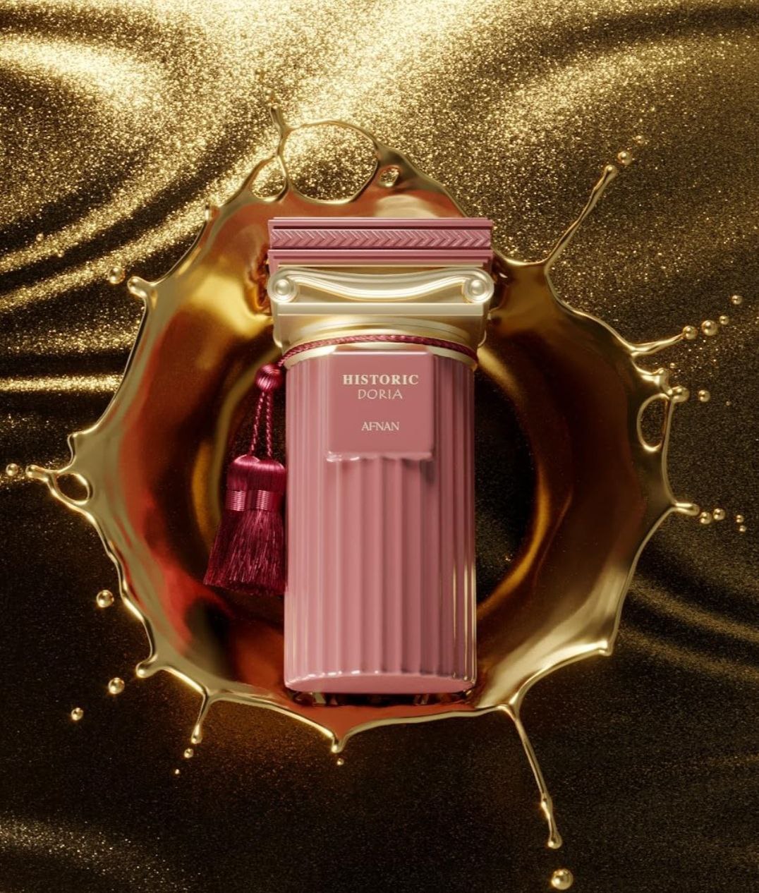 عطر درية افنان التاريخي . هذا عطر جديد دوريا تاريخية صدر عام 2022. عمران الفضلاني قام بتوقيع هذا العطر. إفتاحية عطر توت العلق, بشر الليمون و زهر البرتقال; قلب عطر الأمبروكسان، مسك الروم، الياسمين و الماندرين (اليوسفي)؛ قاعدة عطر تتكون من الأخشاب، المسك و ياسمين سامباك.