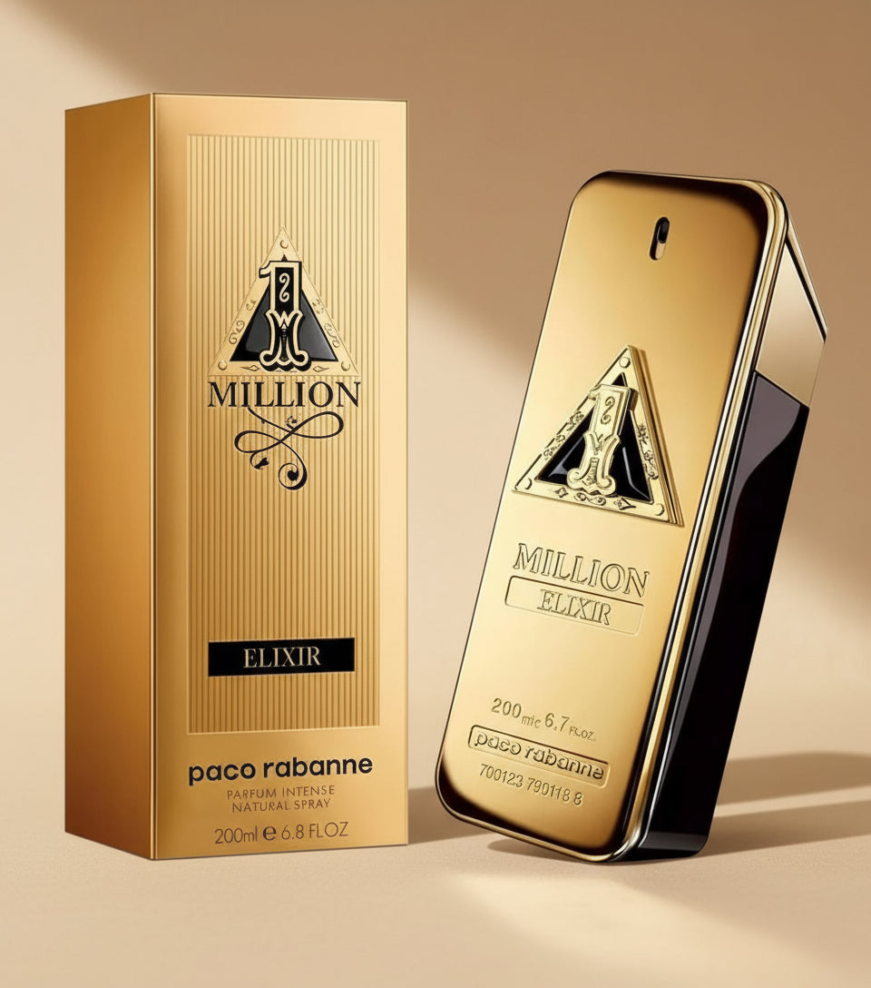عطر خشبي - اروماتك للرجال . هذا عطر جديد 1 Million Elixir عام 2022. افتتاحية عطر جوجل و الدافانا; قلب العطر الورد الدمشقي, خشب الأرز و أوسمانثوس; قاعدة العطر تتكون من الفانيليا وحبوب التونكا والباتتشولي