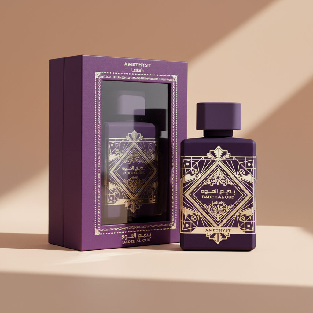 Bade'e Al Oud Amethyst Lattafa Perfumes عطر شرقي - فانيليا للجنسين. Bade'e Al Oud Amethyst صدر عام 2021. إفتتاحية العطر الفلفل الوردي و البرغموت; قلب العطر الورد التركي, الورد البلغاري و الياسمين; قاعدة العطر تتكون من العود, العنبر و الفانيليا.