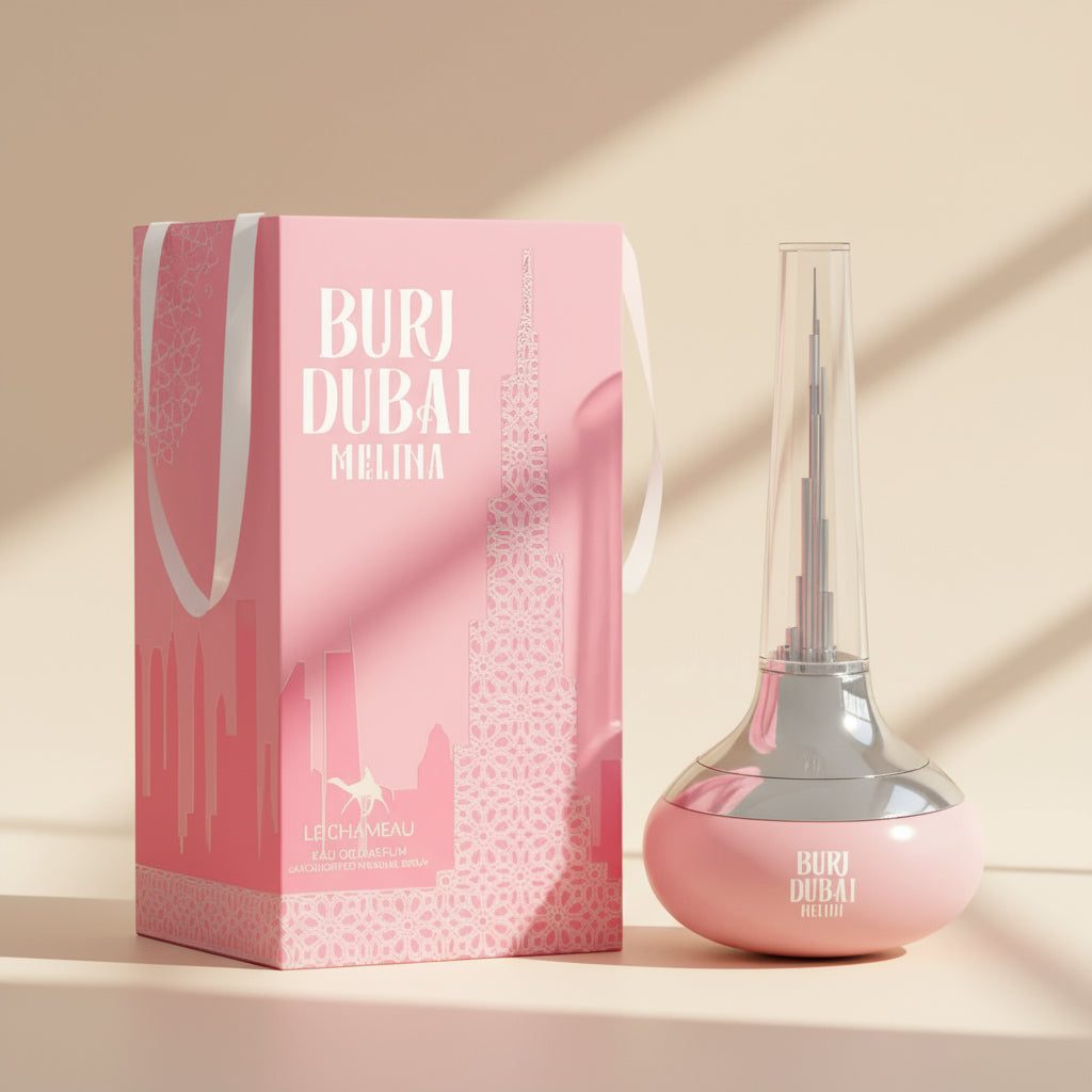 Burj Dubai Melina Le Chameau عطر شرقي - زهري للنساء . Burj Dubai Melina صدر عام 2023. إفتتاحية العطر البرغموت, الراوند, جوزه الطيب و الليتشي; قلب العطر الورد التركي, الباتشولي, الفانيليا, الفاوانيا و المسك; قاعدة العطر تتكون من نجيل الهند من هايتي, البخور و خشب الأرز.