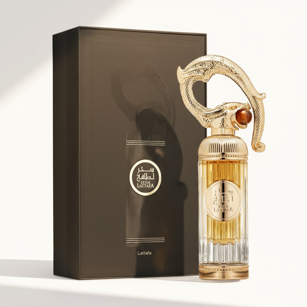 Sehr Lattafa Perfumes عطر شرقي - زهري للجنسين. هذا عطر جديد Sehr صدر عام 2024. إفتتاحية العطر اللوز المر و القرفة; قلب العطر أكيغالاوود, Pomarose و الياسمين; قاعدة العطر تتكون من الفانيليا, حبوب التونكا و العنبر.