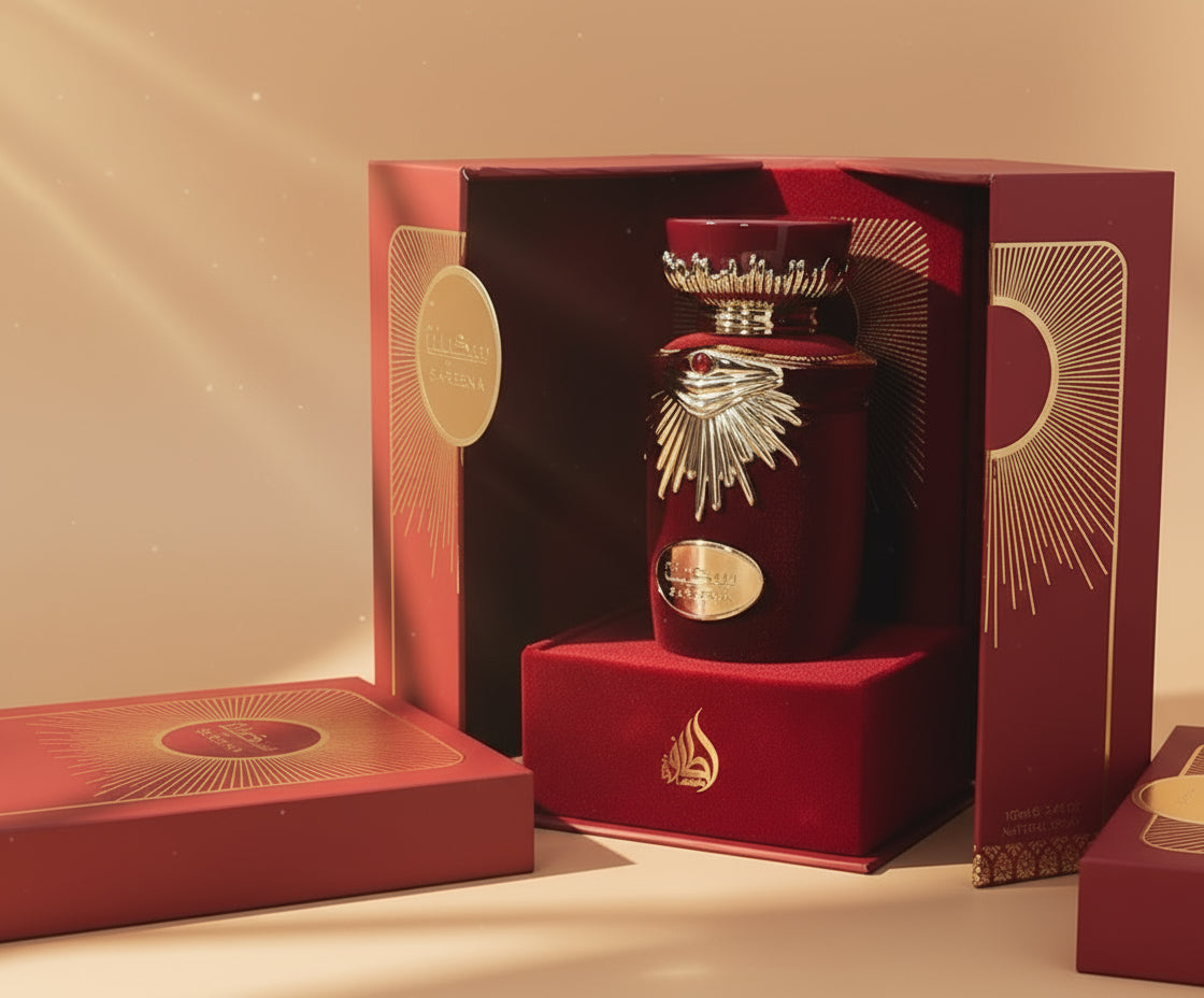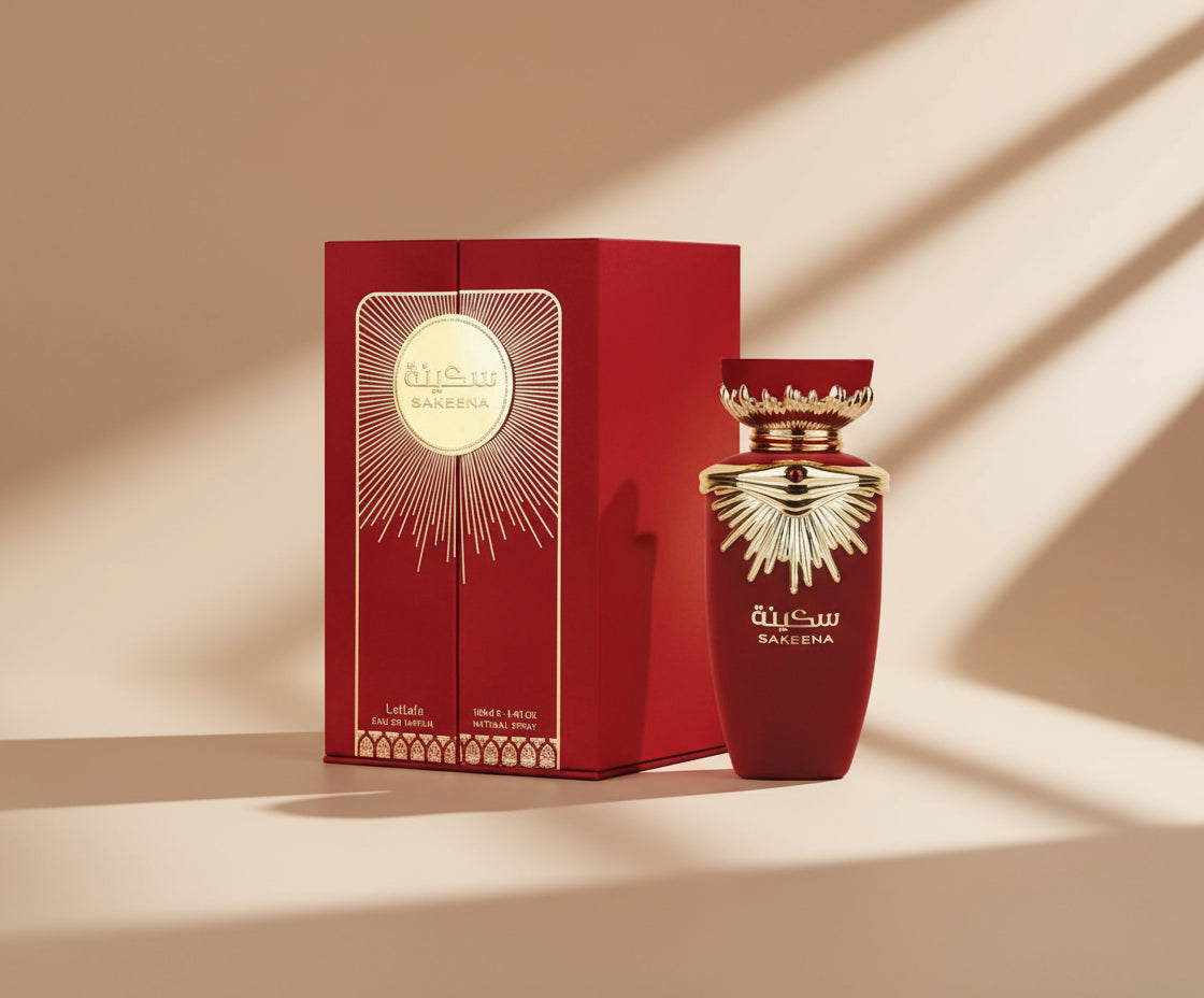 Sakeena Lattafa Perfumes عطر زهري - فواكه - جورماند للنساء . هذا عطر جديد Sakeena صدر عام 2022. إفتتاحية العطر الباشون فروت, وتلاحظ Ozonic و الماندرين (اليوسفي); قلب العطر توت العليق, الورد, أملاح البحر و زهر البرتقال; قاعدة العطر تتكون من الطوفي, حلوي اللوز, الفانيليا و المسك.