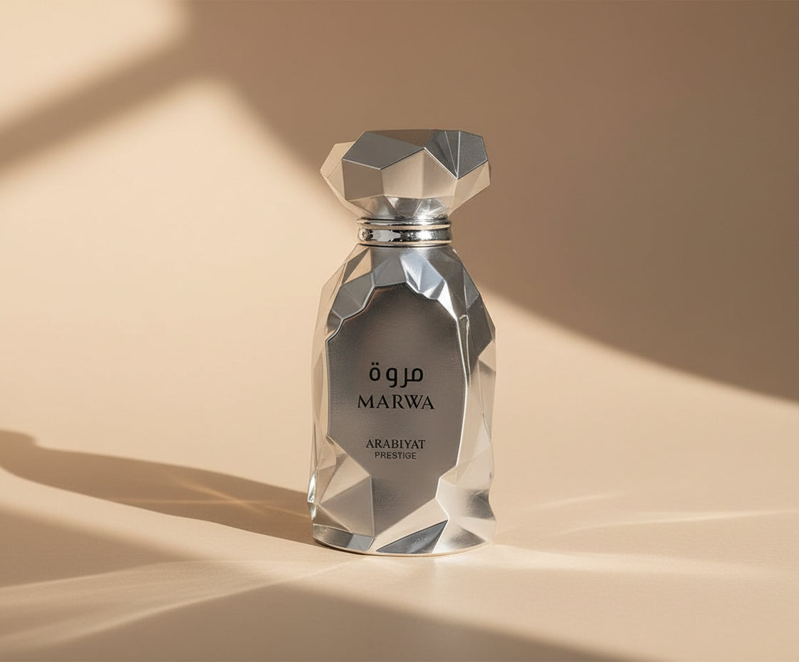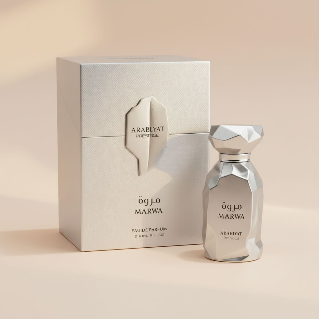 Marwa Arabiyat Prestige عطر حمضيات - أروماتك للرجال . هذا عطر جديد Marwa صدر عام 2025. إفتتاحية العطر برغموت كالابريا, الليمون و البرتقال الصقلي; قلب العطر الزنجبيل النبجبري, زهر البرتقال التونسي و قرفة سيلان; قاعدة العطر تتكون من الشاي الصيني الأسود, الأمبروكسان, اللبان و أخشاب الغاياك.