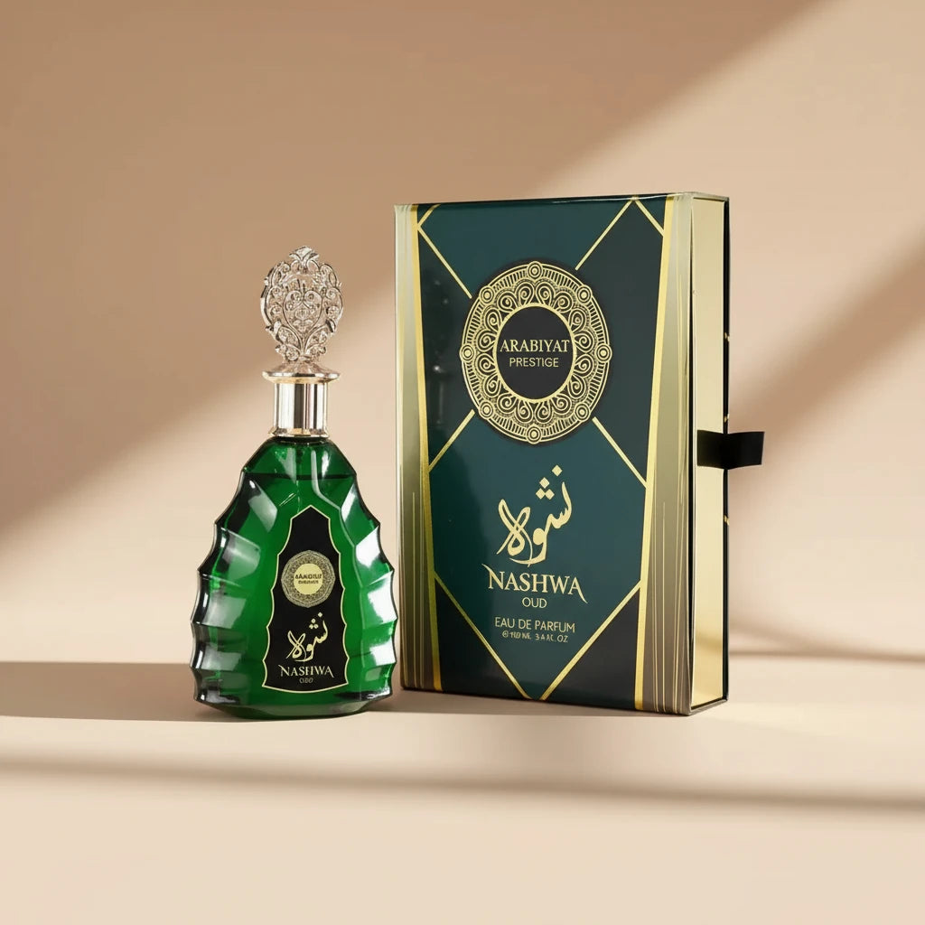 Nashwa Oud Arabiyat Prestige عطر للجنسين. هذا عطر جديد Nashwa Oud صدر عام 2024. House of My Perfumes قام بتوقيع هذا العطر. إفتتاحية العطر إبره الراعي, البرغموت و الزعفران; قلب العطر اللبان, الأمبروكسان و خشب الأرز; قاعدة العطر تتكون من العود, الفانيليا و الباتشولي.