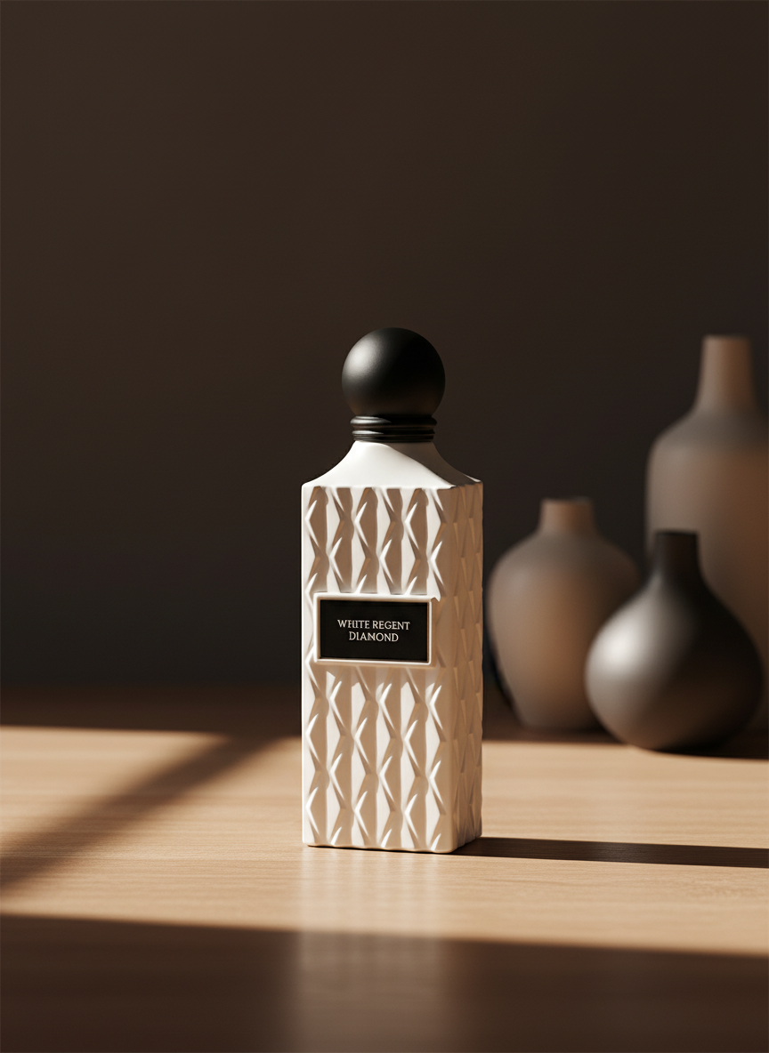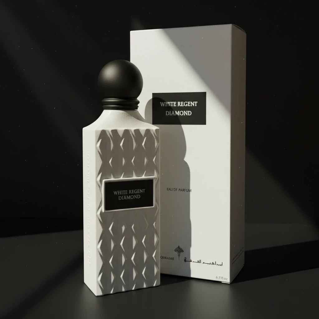 White Regent Diamond Ibrahim Al Qurashi عطر للجنسين. هذا عطر جديد White Regent Diamond صدر عام 2025. إفتتاحية العطر خشب الصندل, الهيل, الشاي و ثمار التين; قلب العطر السوسن و نجيل الهند; قاعدة العطر تتكون من حبوب التونكا, الفانيليا و الباتشولي.