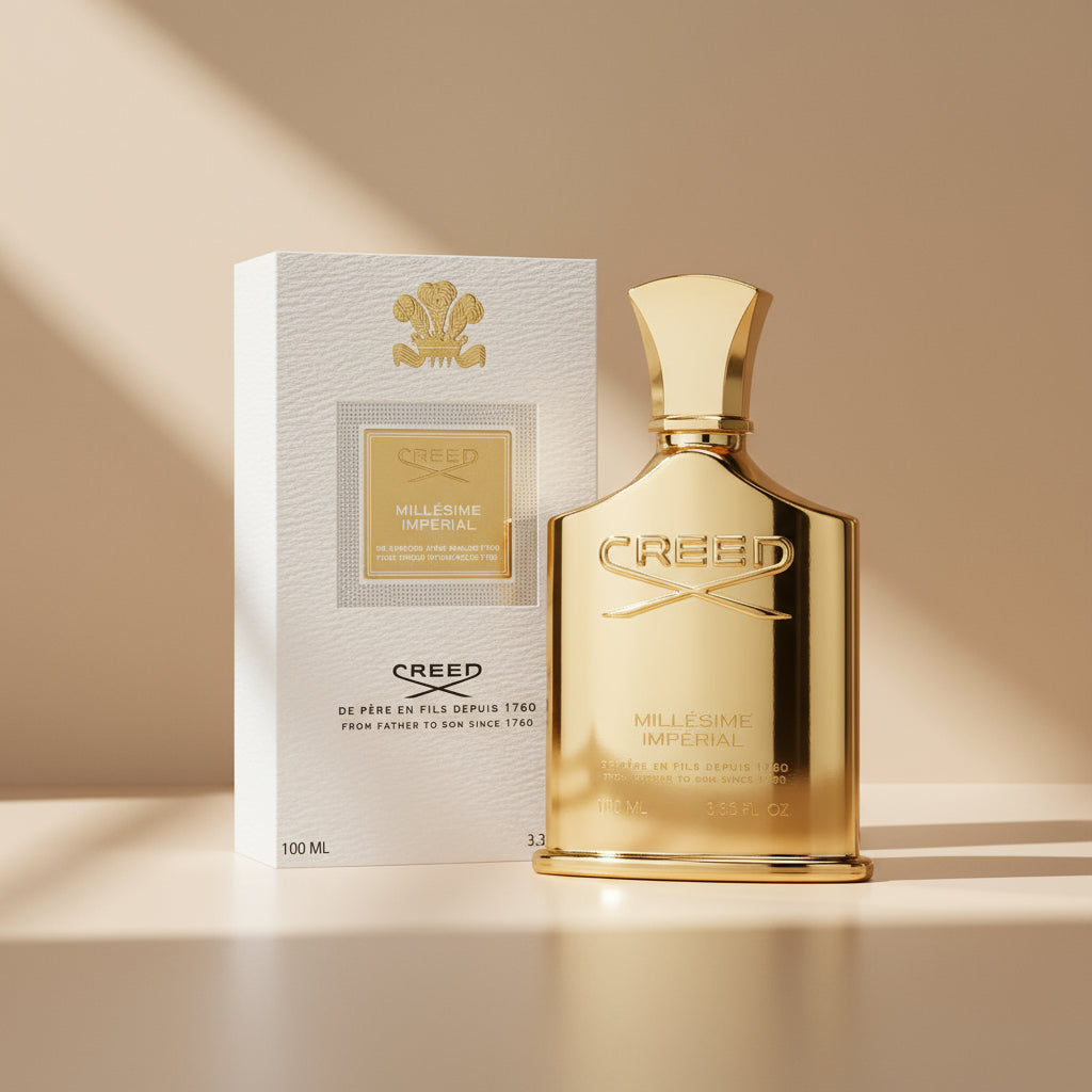 Millésime Impérial Creed عطر خشبي - زهري -. Millésime Impérial صدر عام 1995. Millésime Impérial من توقيع Olivier Creed و Pierre Bourdon. إفتتاحية العطر أملاح البحر و نوتات الفواكه; قلب العطر الليمون الصقلي, البرغموت, السوسن و الماندرين (اليوسفي); قاعدة العطر تتكون من نسيم البحر, المسك و الأخشاب.