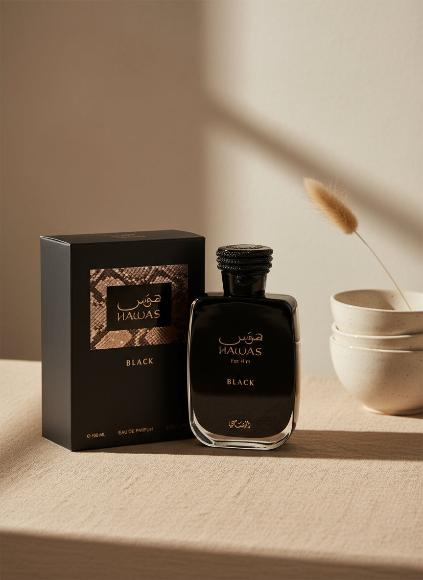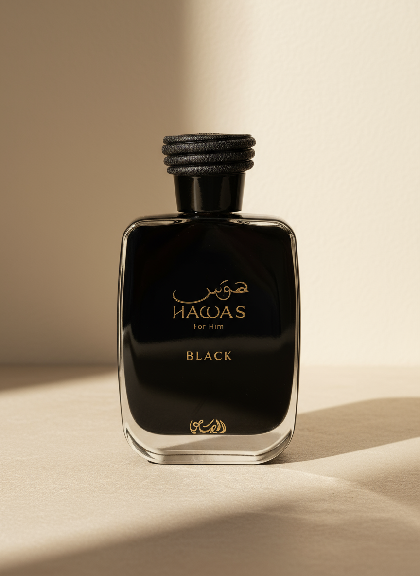 Hawas Black Rasasi عطر أروماتك - فواكه للرجال . هذا عطر جديد Hawas Black صدر عام 2024. إفتتاحية العطر البرغموت, الأناناس و الجريب فروت; قلب العطر الباتشولي, خشب الأرز و الياسمين; قاعدة العطر تتكون من طحلب البلوط (طحلب السنديان), الأخشاب و العنبر.