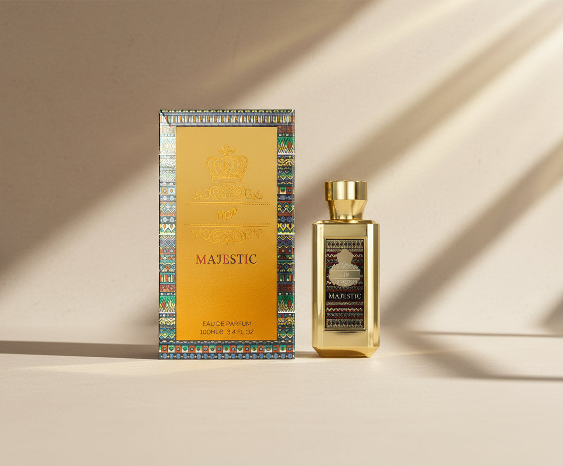 وتات عطر Majestic Arabian Oud هي: بداية من الورد البري والفواكه والبرغموت، قلب من الصفير والأخشاب والشيح، وقاعدة من المسك الأبيض والبخور والعود وخشب الصندل. هذه النوتات تجعله عطرًا زهريًا فاكهيًا للنساء.