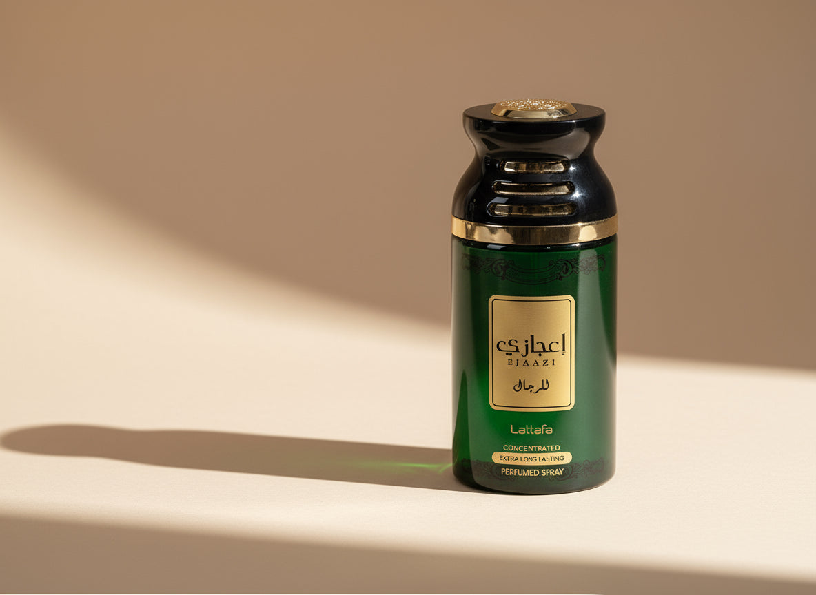 Ejaazi Lattafa Perfumes عطر شرقي للجنسين. Ejaazi صدر عام 2018. إفتتاحية العطر الحمضيات, البرتقال, الخزامي, الهيل و عشب الميرتل (الآس); قلب العطر الفلفل, الباتشولي, زنابق الوادي و أوراق القرفة; قاعدة العطر تتكون من الأمبروكسان, الأخشاب, العنبر, خشب الأرز, طحلب البلوط (طحلب السنديان) و نجيل الهند.