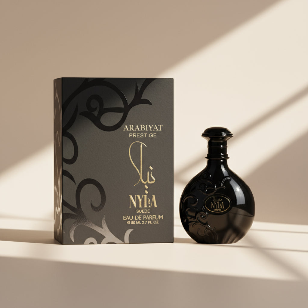 Nyla Suede Arabiyat Prestige عطر للجنسين. هذا عطر جديد Nyla Suede صدر عام 2024. Quetin Roussel قام بتوقيع هذا العطر. إفتتاحية العطر جوز الهند, الكاراميل و حلوي اللوز; قلب العطر أخشاب الكشمير, اللبن, الفانيليا و الإيلنغ; قاعدة العطر تتكون من الجلود, الآمبرغريس, المسك و خشب الصندل.